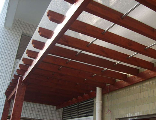 顏色:防腐木材料制好后,涂刷防腐木專用木油、木漆或木蠟油上色,防腐木本色為草綠色,油漆顏色多樣,多為紅、黃、棕色系??蛇M行炭化處理,處理后紋理更加美觀。